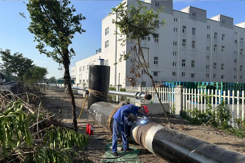 杭州钱塘优科豪马轮胎有限公司作为园区重要的招商引资项目,其核心工艺对蒸汽的需求数量大、品质高。项目开工以来,临江环保公司先后5次对接设计、监理、施工单位及政府职能部门,沟通施工相关事宜,多次召开专题推进会,打通施工许可、苗木赔偿、河道占用等8项审批堵点,确保各方对管道工程施工的支持和配合。特别是近期,由于热网管线需穿越厂区、道路、河道等9处复杂节点,最窄作业面仅3米,施工团队采用“桁架+埋地”组合方式,提前完成BIM模拟,以现场分段预制、整体吊装的形式,既缩短高空作业时间,又保证一次成型。在此基础上,施工团队一方面切实加强施工现场管理,严格执行各项施工规范和标准,确保每一道工序都符合质量要求;另一方面,强化安全防护措施,为施工人员配备完善的安全防护装备。目前,已完成土建支墩130个、各类管道1685米及500米保温层。